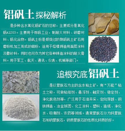 是多種含水氧化鋁礦石的總稱,主要成分是氧化鋁Al2O3。主要用于煉鋁工業(yè),制耐火材料、研磨材料、鋁化合物。鋁礬土粉是煅燒過的熟鋁礬土礦石用磨粉機加工而成的細粉,適用于熔模鑄造用面層涂料及撒砂料,同時也可作為其它各種鑄造涂料的耐火骨料。用于軍工、航天、通訊、儀表、機械等部門。